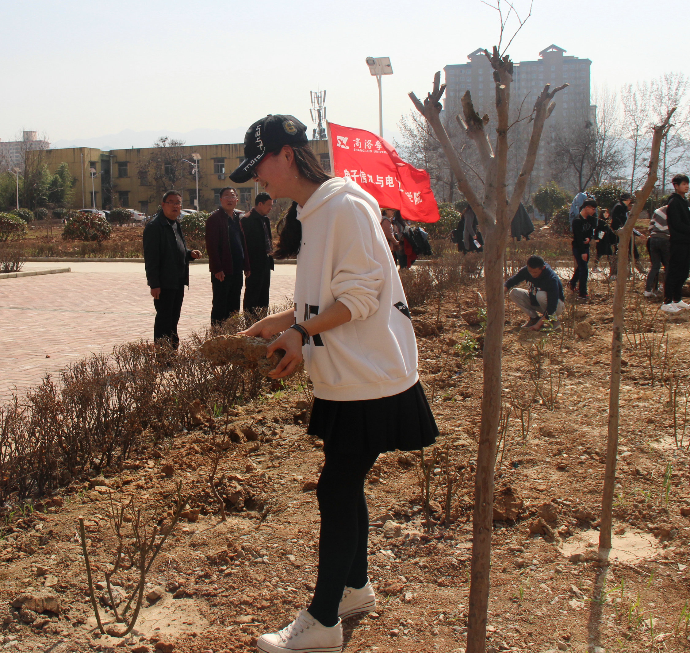 桃红柳绿,转眼又是2018年度的植树节,为美化校园环境,进一步增强全体师生的环保意识,认真践行雷锋精神,3月12日,电信学院辅导员唐龙龙、任艳老师携部分2016、2017届学生赴学校新综合楼前月季园参加植树节义务劳动。