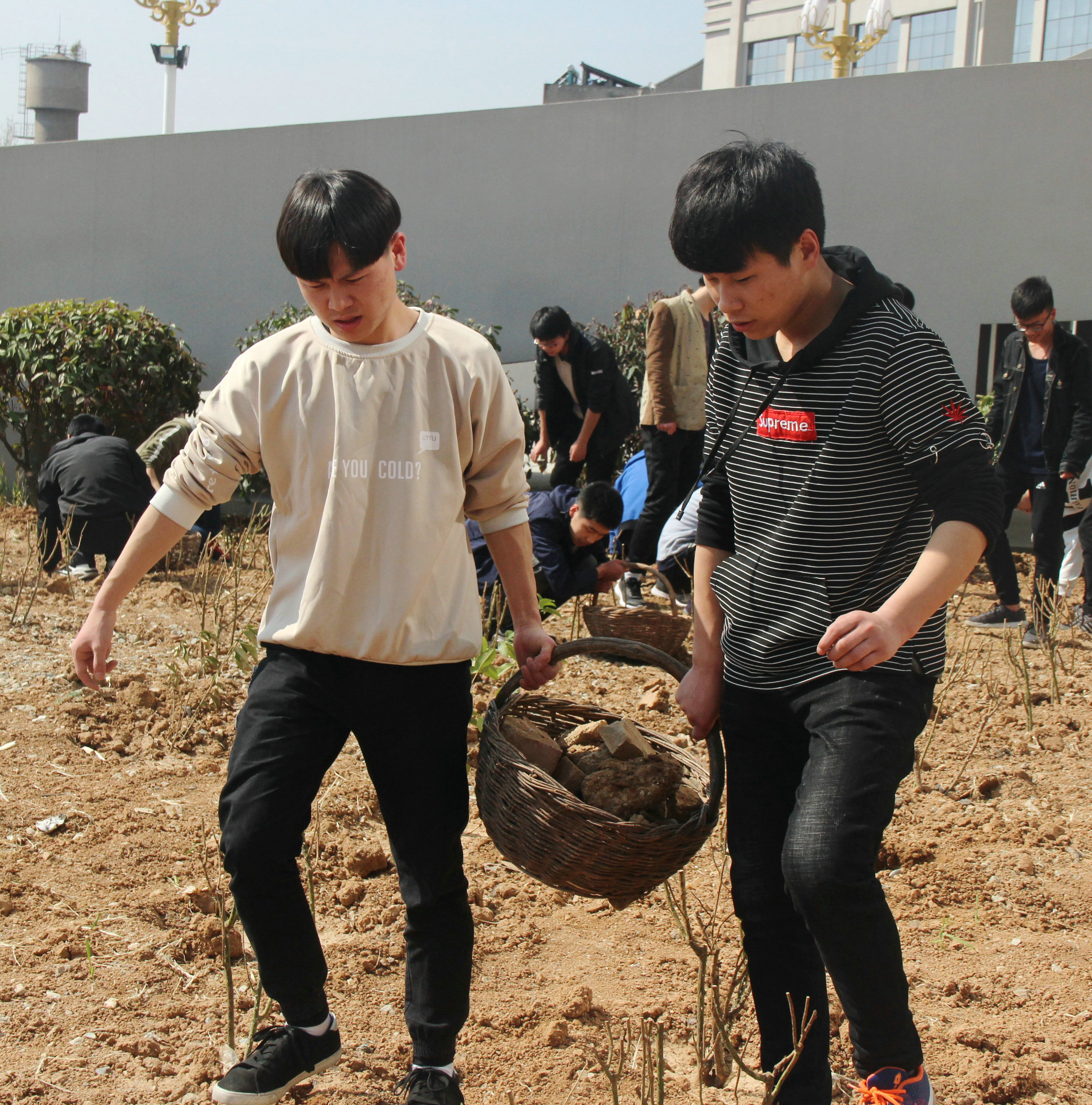 同学们集中后,在老师带领下来到新综合楼前月季园内为新栽培的月季捡去硬石杂物,为绿植提供一个健康成长的环境。同学们相互合作捡拾砖头,净化土壤,一派热火朝天的劳动景象。劳动现场,老师们以身作则,积极参与劳动,为同学们做出了表率;同学们热情洋溢、干劲十足。大家一起比干劲、比进度,样样做得认真到位,个个忙得满头大汗,新综合楼前到处都是忙碌的身影和劳动的欢声笑语。经过几个小时的劳动,月季园环境焕然一新,春天的校园变得更美了