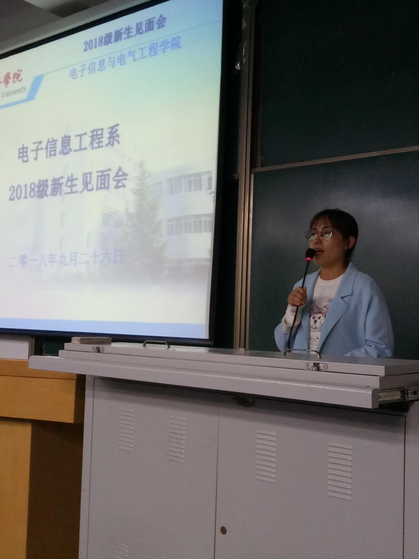 9月26日晚7时,电信学院电子信息工程专业在1号楼多媒体2召开2018级新生见面会,电信学院院长袁训锋、电子信息工程系全体教师、新生班主任及电子信息工程系专业2018级全体新生参会。会议由电子信息工程系主任王博主持。