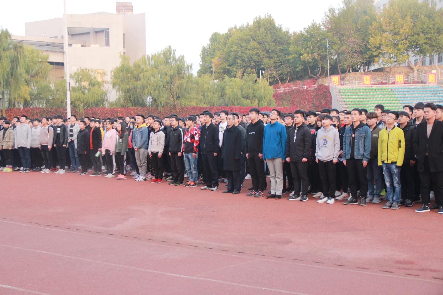 10月22日早,迎着第一缕晨曦,电信学院全体师生在学校体育场参加第八周升国旗仪式。本次升旗仪式由我院学生张志强主持。