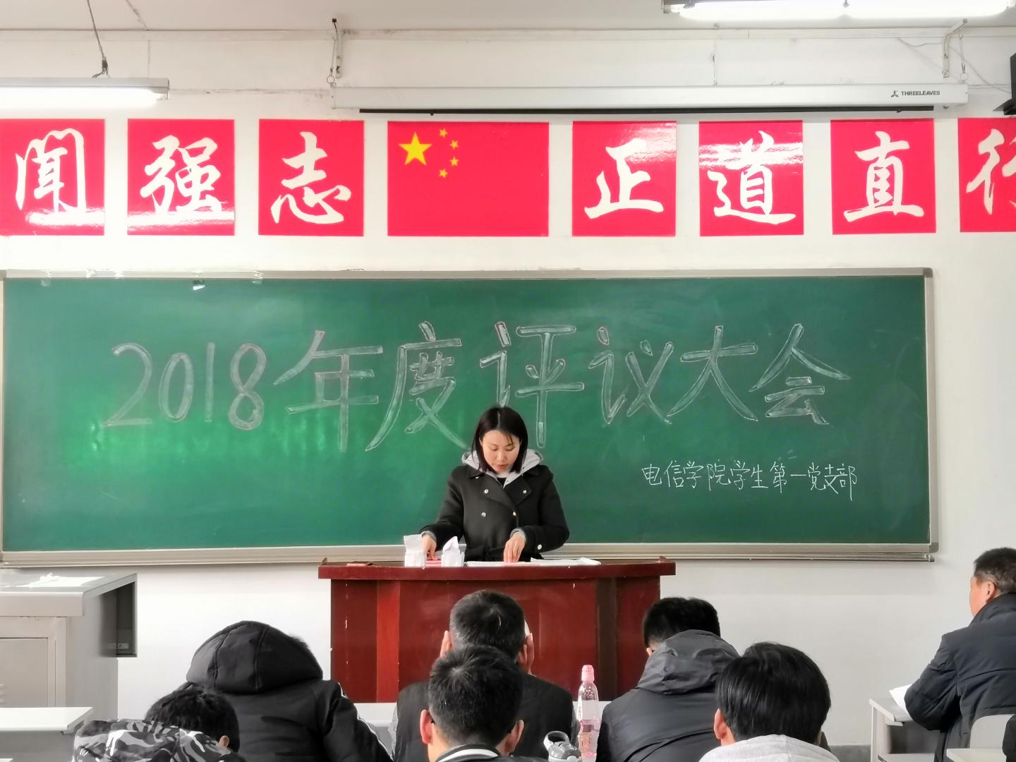 根据我校党委文件精神和我院党总支安排,1月7日,电信学院学生第一党支部在2#204教室召开2018年度民主评议党员工作会。党总支委员杨延锋出席了本次会议。会议由支部书记任艳主持。学生第一党支部28名党员全体参加了本次会议。