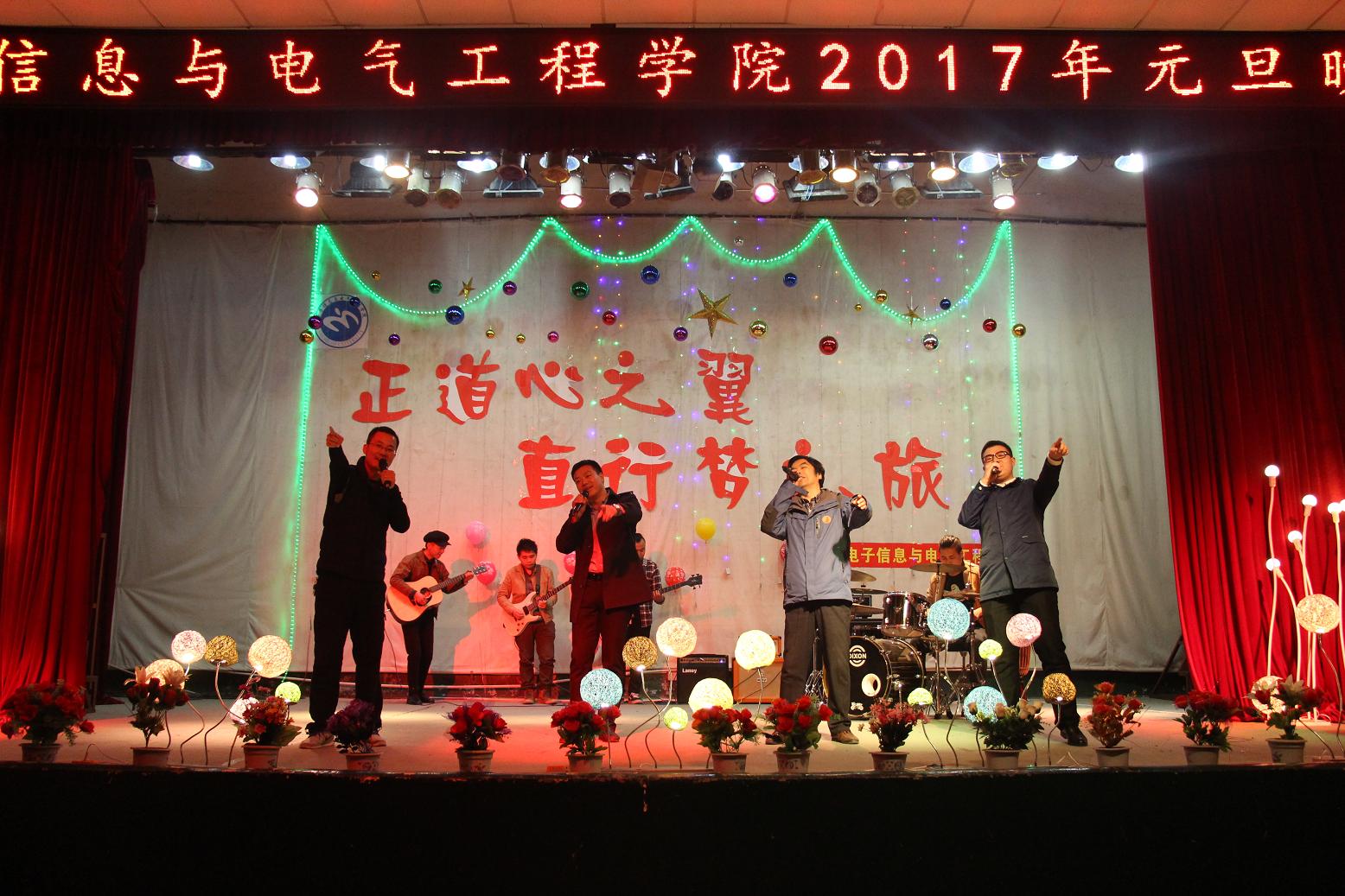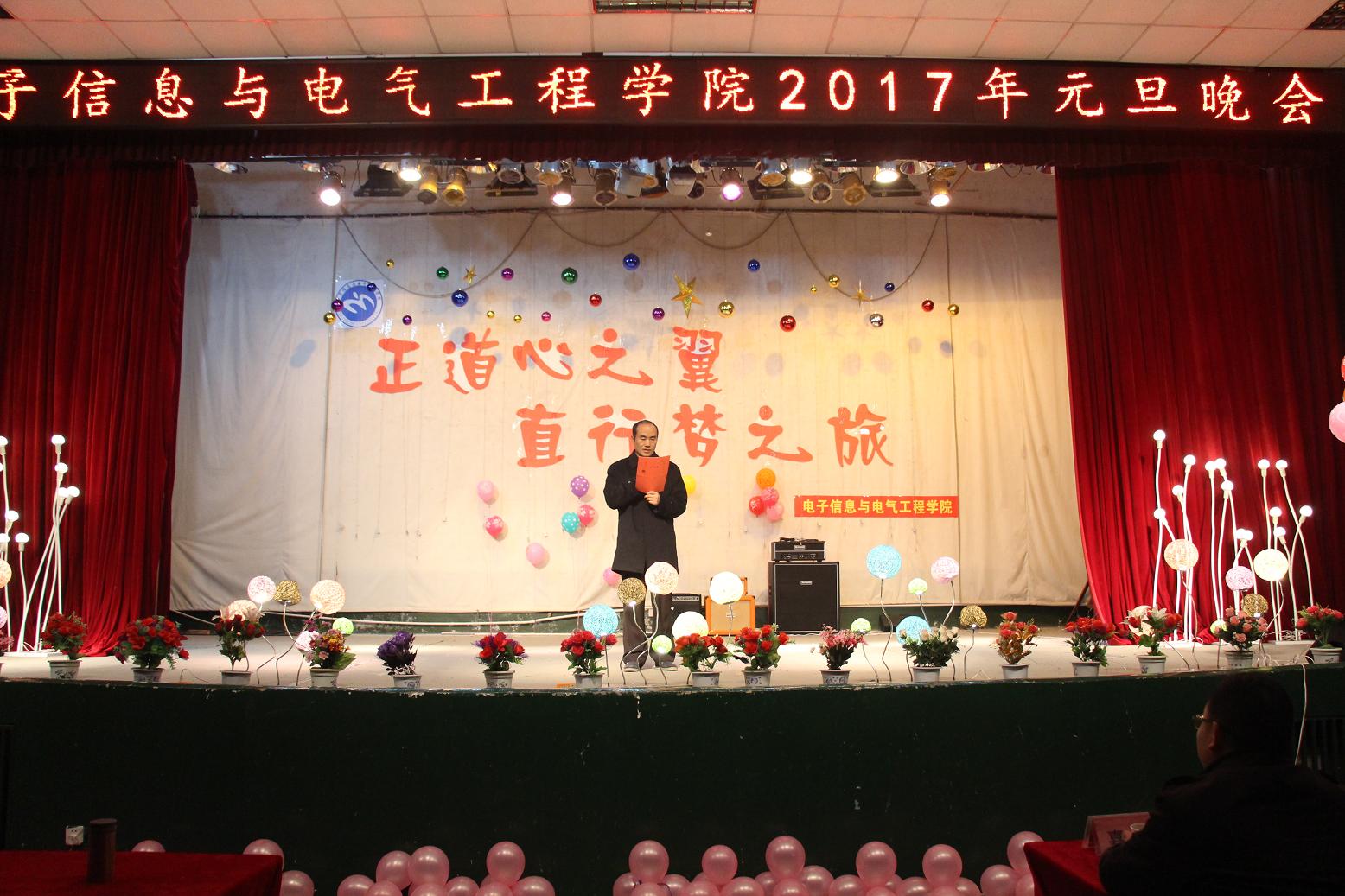 2016年12月15日晚,电子信息与电气工程学院在大学生活动中心成功举办主题为“正道、心之翼,直行、梦之旅”的2017年元旦晚会。校党委宣传部部长鱼小强、校团委书记蒋政治等嘉宾和我院全体师生共同观看了本次晚会。