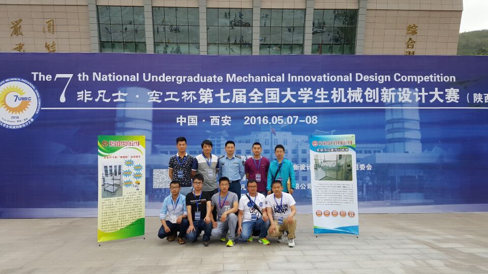 2016年5月6日至8日,由教育部高等学校机械基础课程教学指导委员会主办的第七届全国大学生机械创新设计大赛(陕西赛区)在西安空军工程大学航天航空学院成功举行,我院有两项作品获得三等奖,分别是我院陈垚、郭琳老师指导丰林、张全伟等5名学生创作的《可变尺寸的“宰相肚”分拣推车》,电信学院谢楠老师指导郭佳、王希等4名学生创作的《纸硬币及硬币分离器》。
