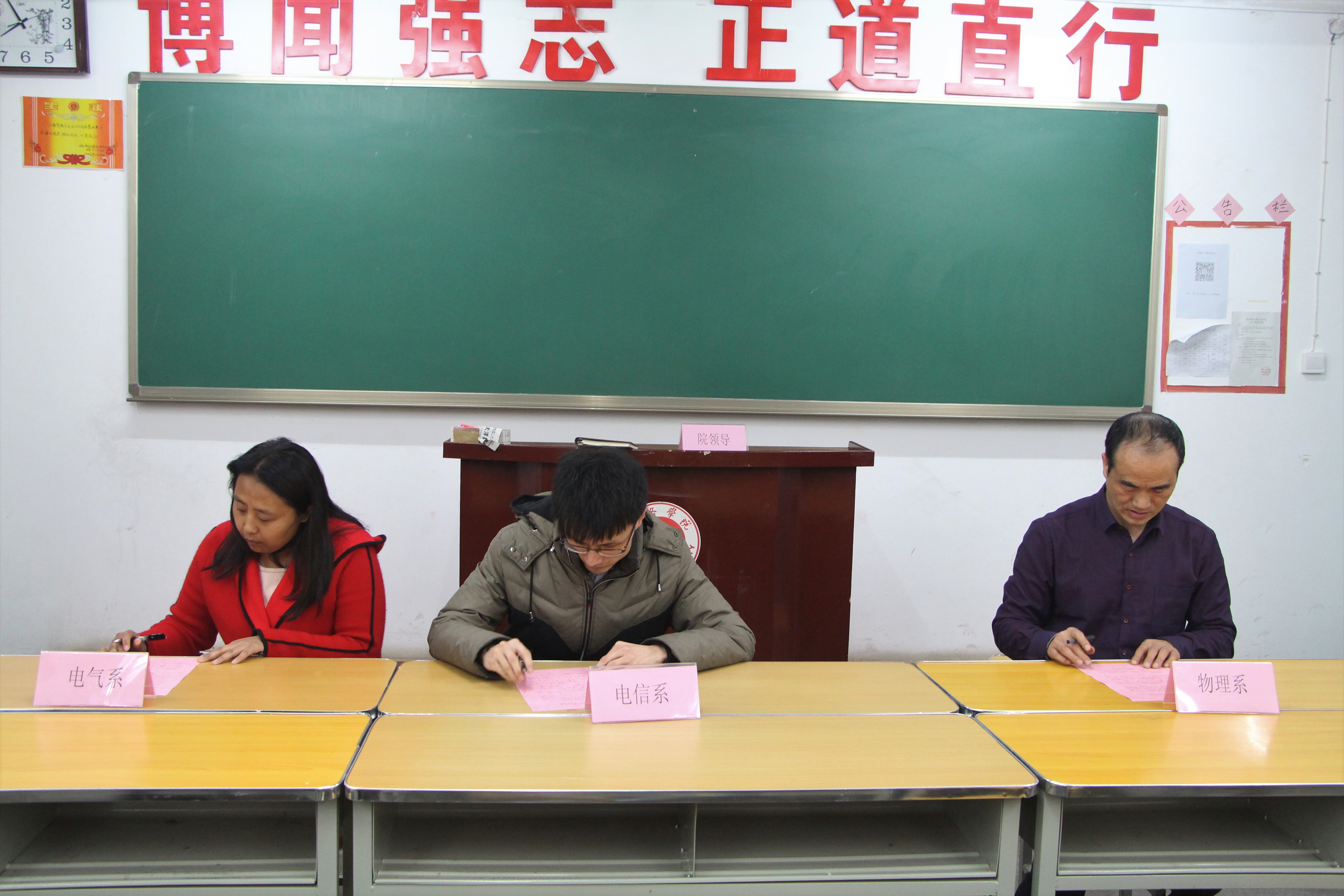 会上,李英分别与物理系、电子信息工程系、电气工程系主任签订了2017年度工作目标任务书。随后,各系职工分别在系主任领签的任务书上签字确认。