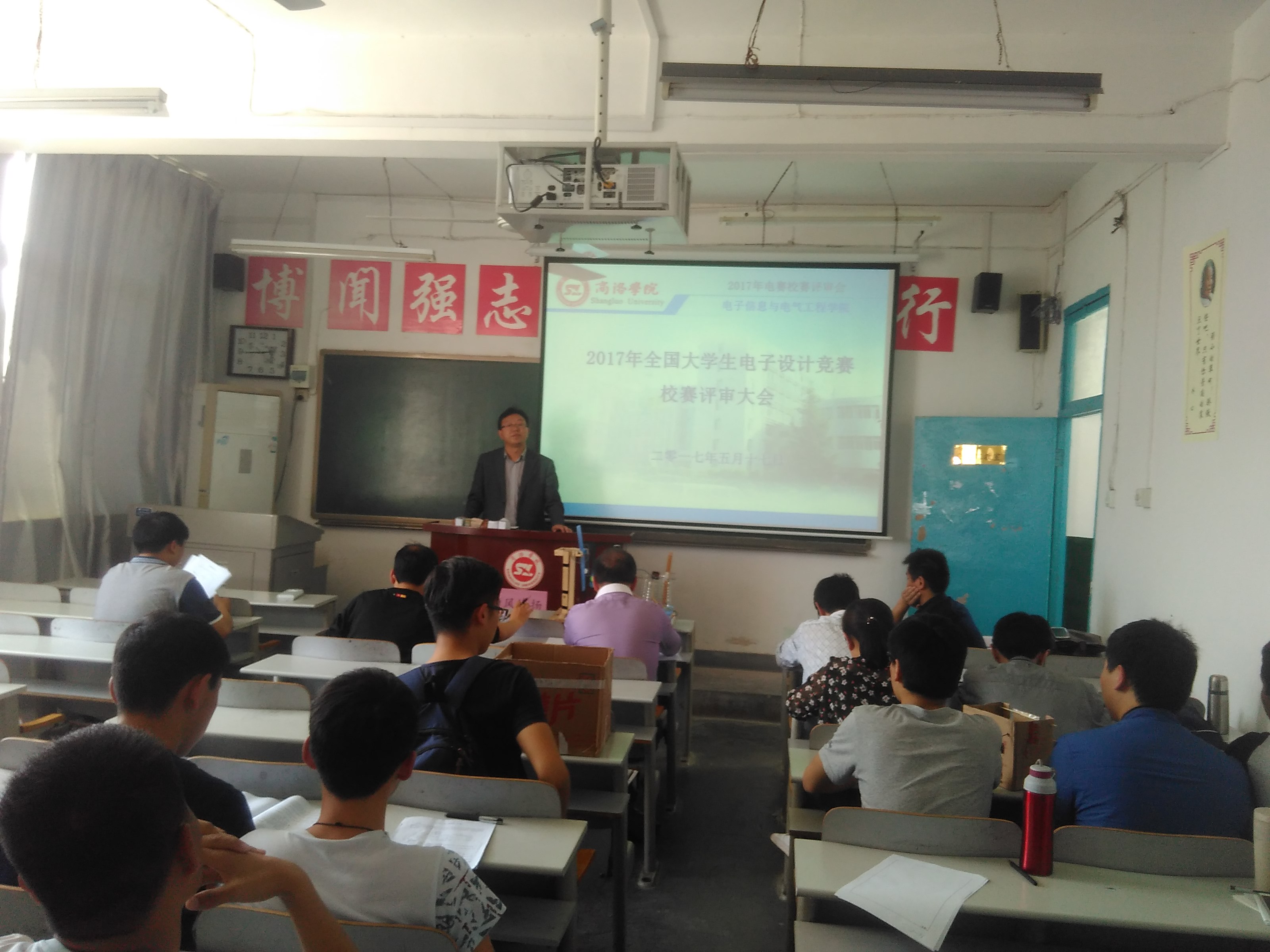 5月17日下午,2017年全国大学生电子设计竞赛校级选拔赛在电信学院2-201教室举行。比赛由电信承办,学校教务处教学实践科科长杨小锋,电信学院骨干教师陈垚、王博、唐卫斌、赵杰担任大赛评委,评审会由电信学院副院长袁训锋主持。